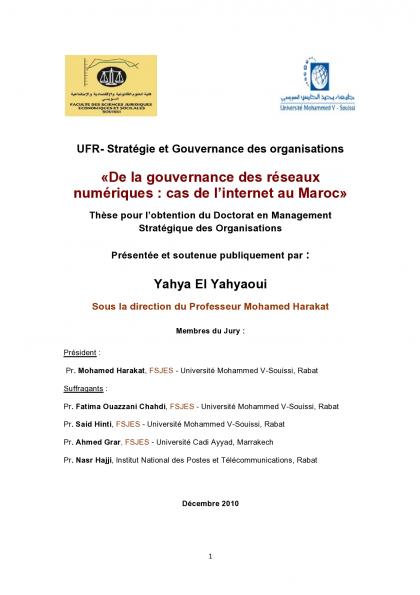 Yahya El Yahyaoui soutiendra publiquement, au siège de la Faculté des Sciences Juridiques, Economiques et Sociales, Université Mohamed V-Souissi, sa thèse pour l’obtention d